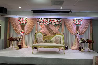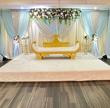 Our spacious venue comfortably hosts up to 350 guests, offering a beautiful setting for weddings, receptions, cultural events, corporate gatherings, and celebrations of every kind. With customizable décor and a warm, inviting atmosphere, we help bring your special occasion to life.